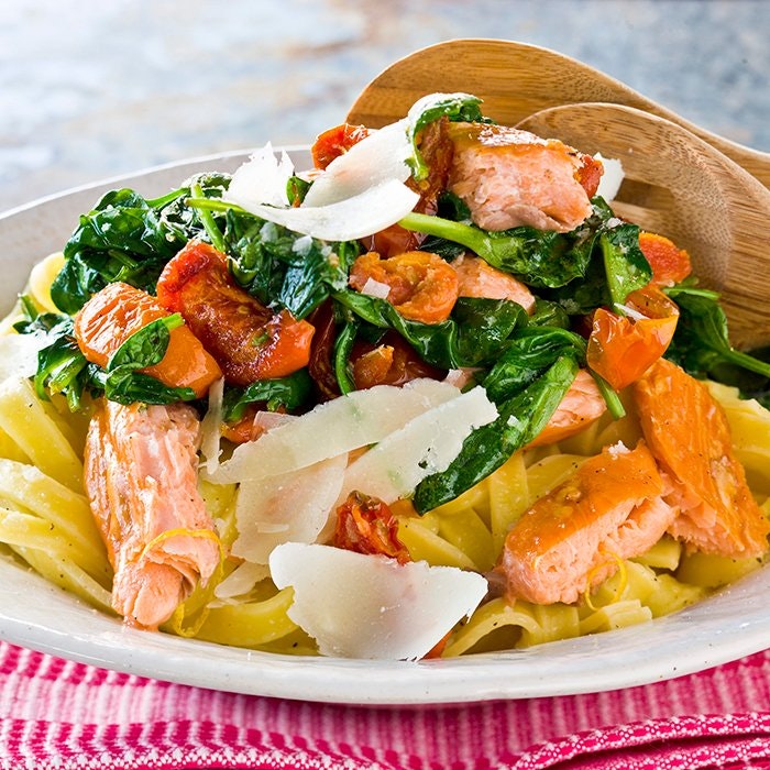 Lattlagad Pasta Med Rokt Lax Soltorkade Tomater Och Spenat Sandra Palmqvist